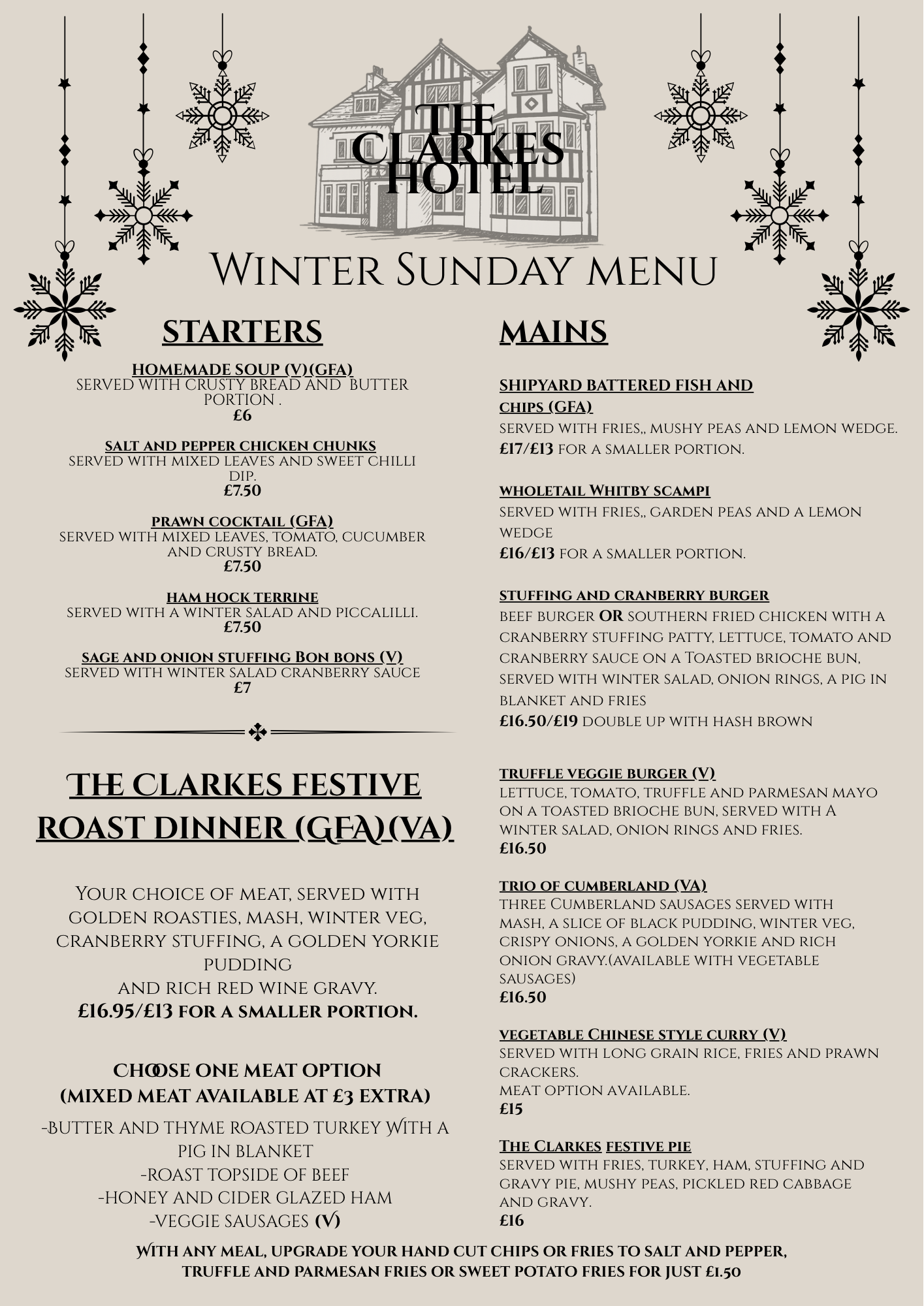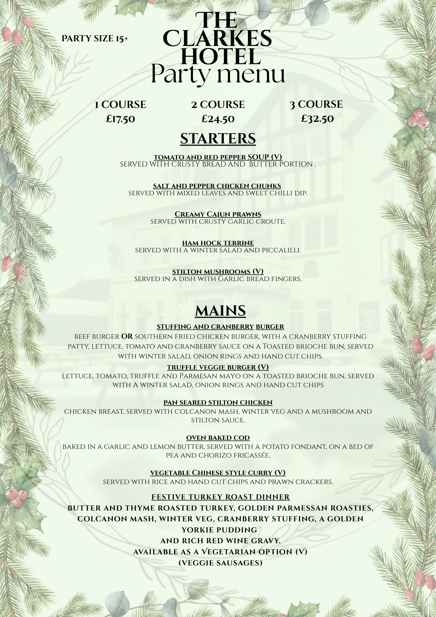 Please visit our Facebook page for specials and updates. The Clarkes Hotel